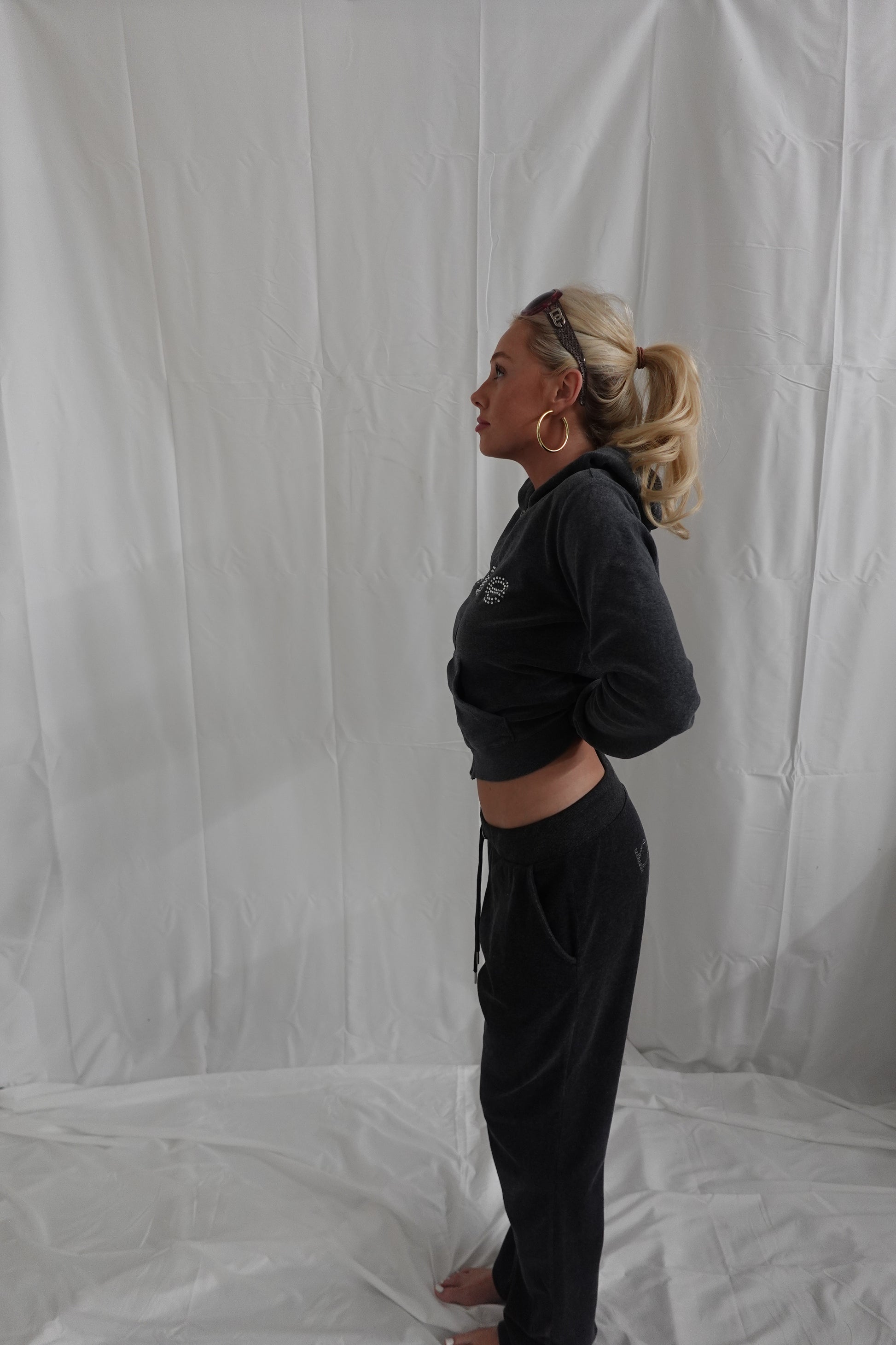 Grey bebe sweat pants with bedazzled backside. (RUNS SMALL)