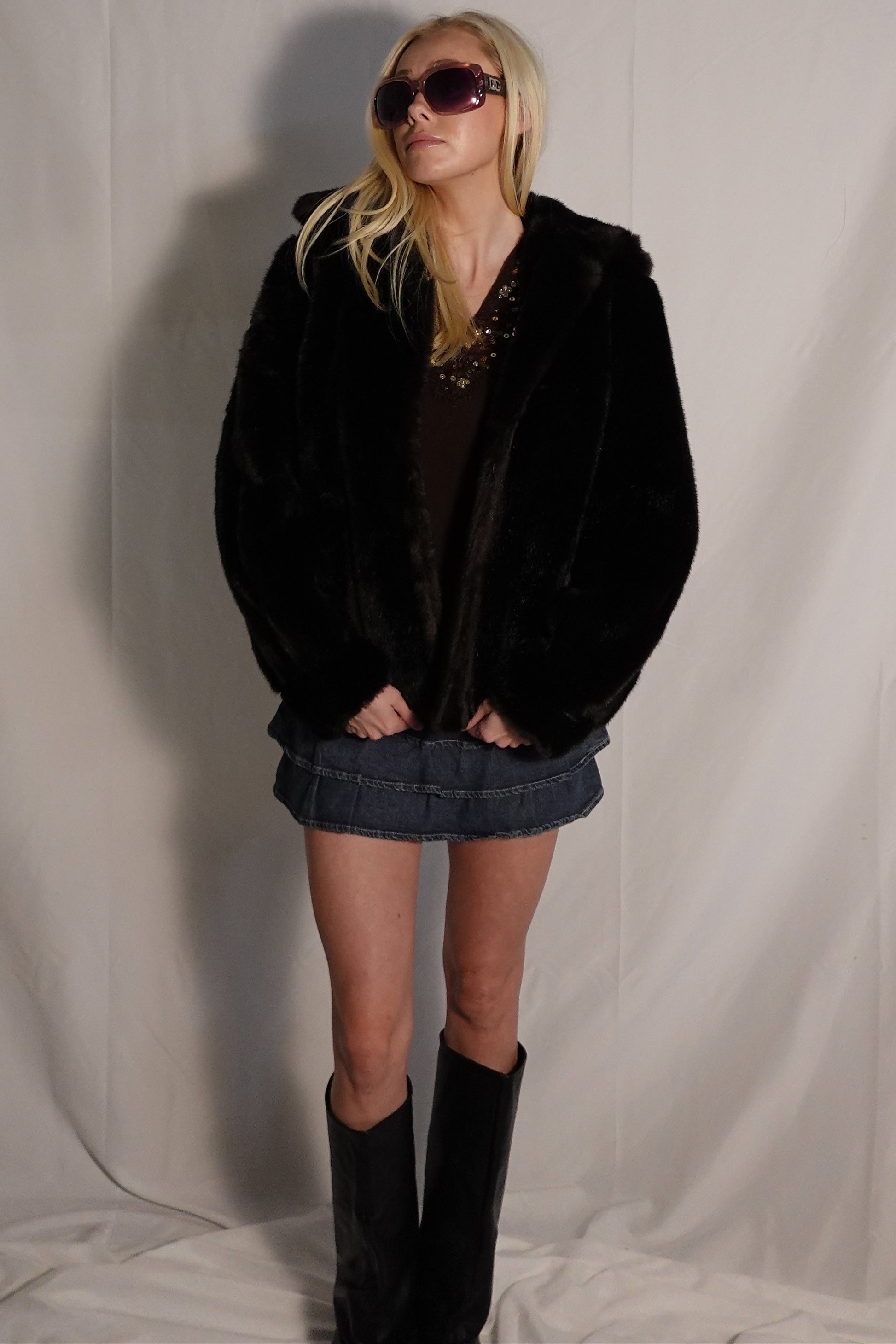 Color: Deep chocolate brown/faux mink look