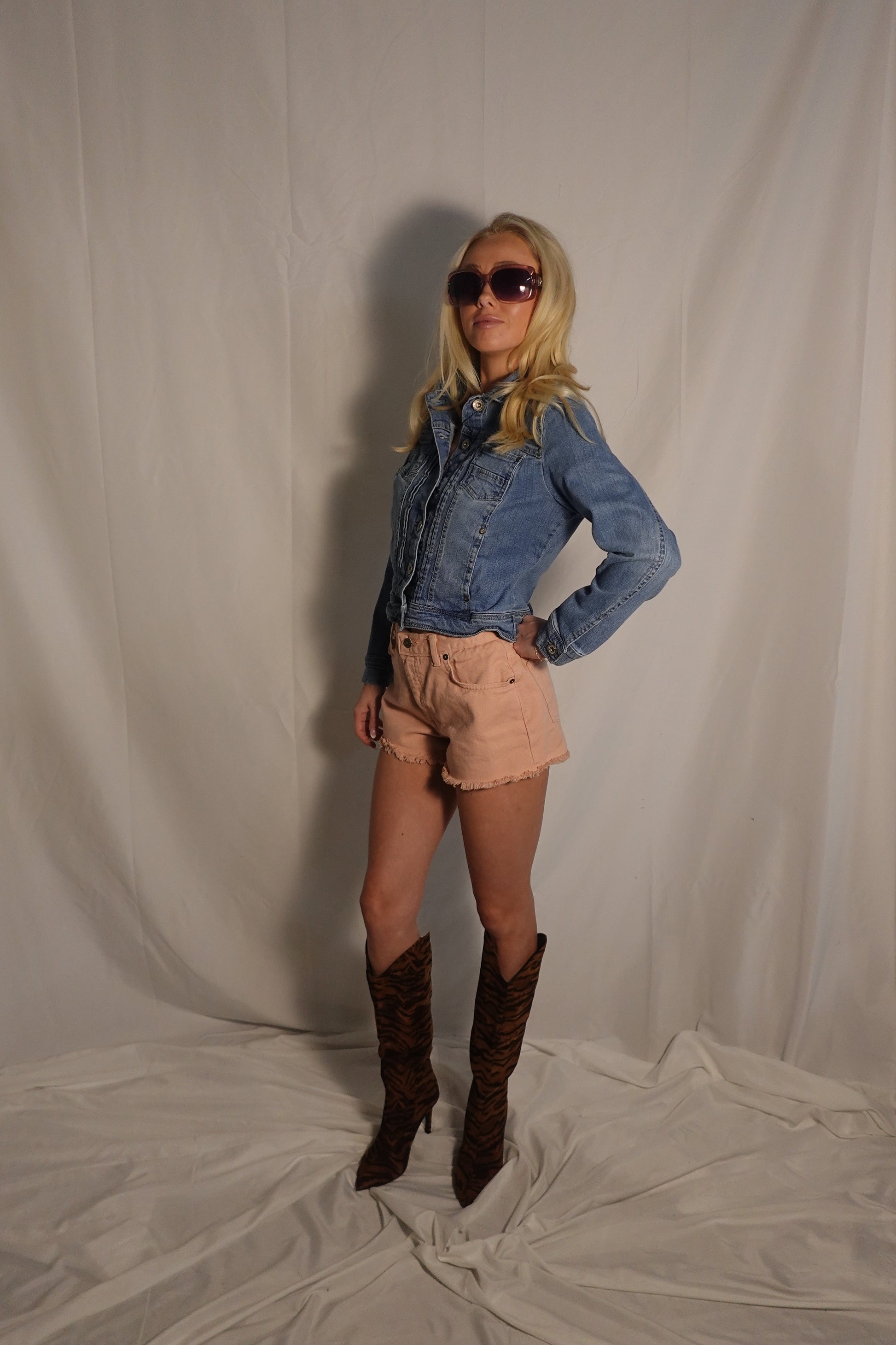 Details: Button-front closure, dual chest pockets, slightly scalloped hem