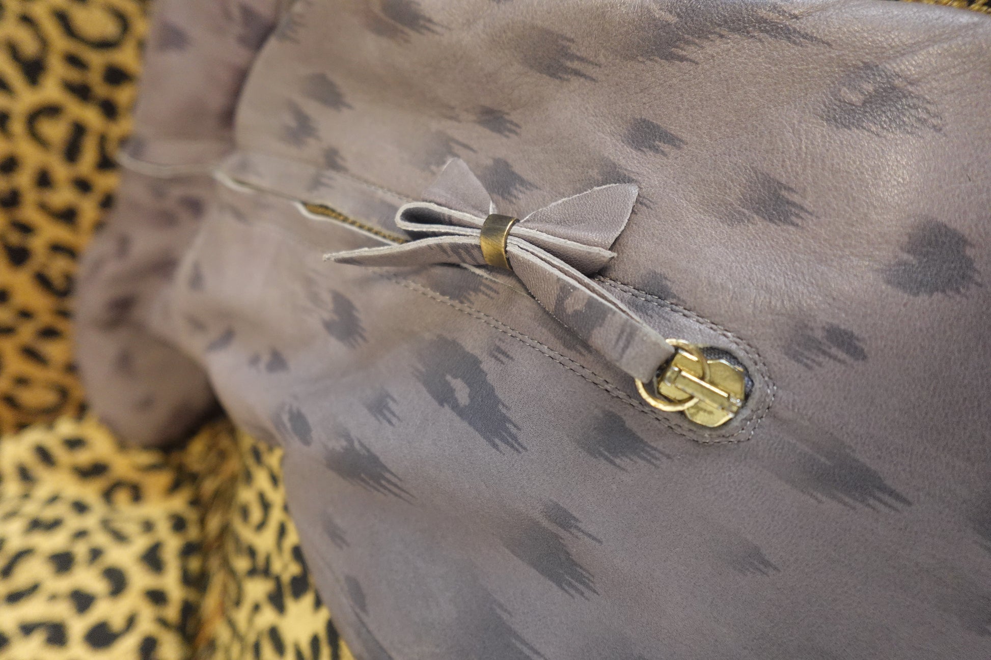 Color: Soft gray with tonal animal print