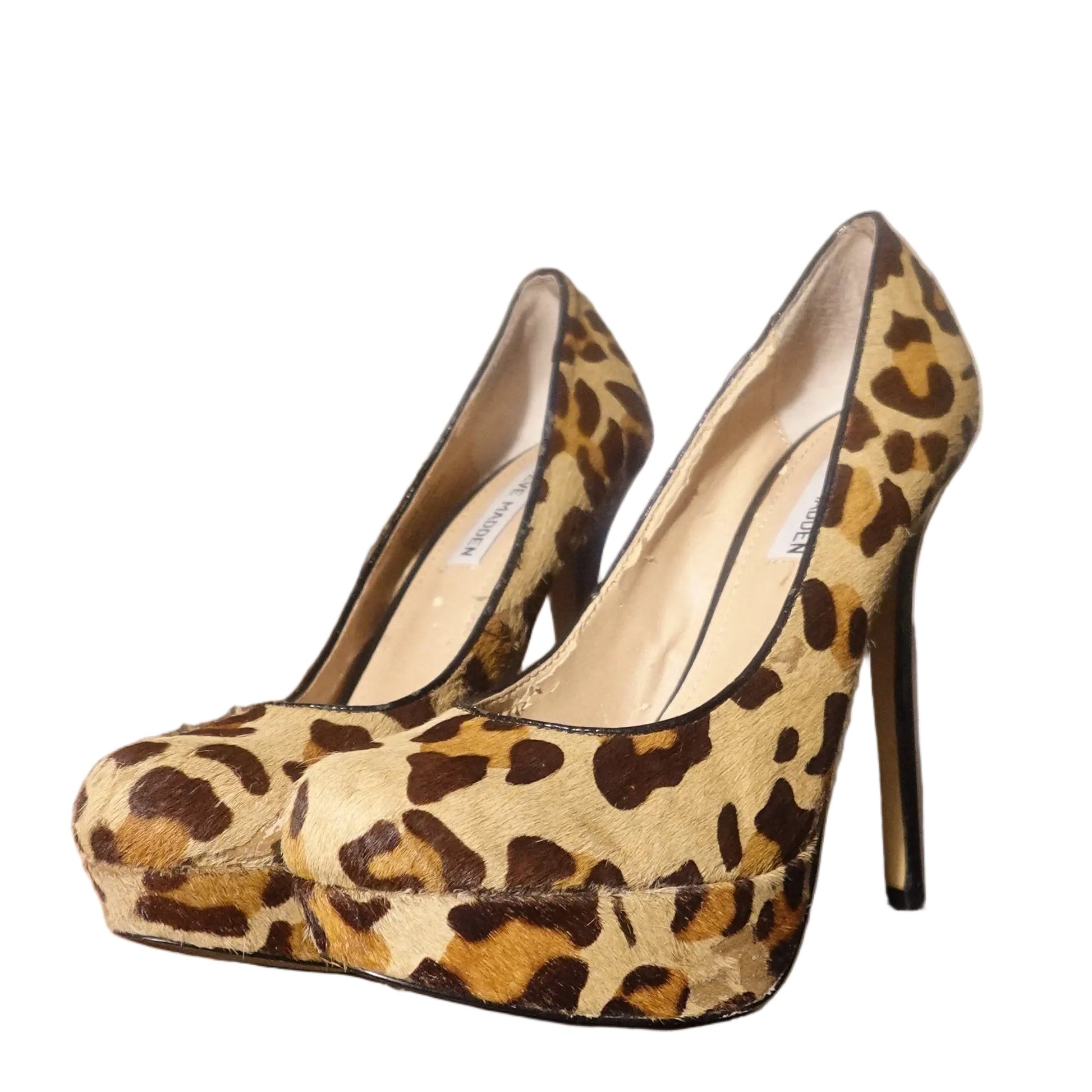 - Platform stiletto pumps, leopard print, rounded toe, high stiletto with platform